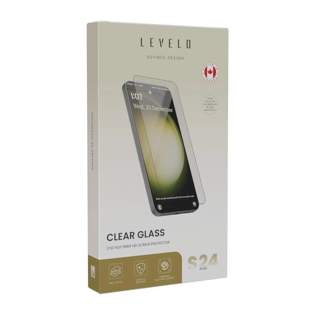 Levelo Clear Glass 2.5D Silk Print HD Screen Protector For Samsung Galaxy S24 Plus & Samsung Galaxy S24