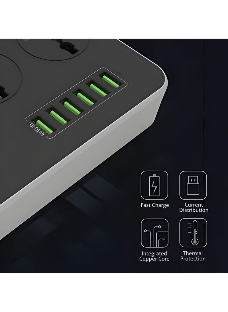 Power up all your devices with this multi-functional extension lead â perfect for homes, offices, and kitchens! Featuring 3 AC outlets + 6 USB ports, it charges phones, laptops, tablets, and more simultaneously.