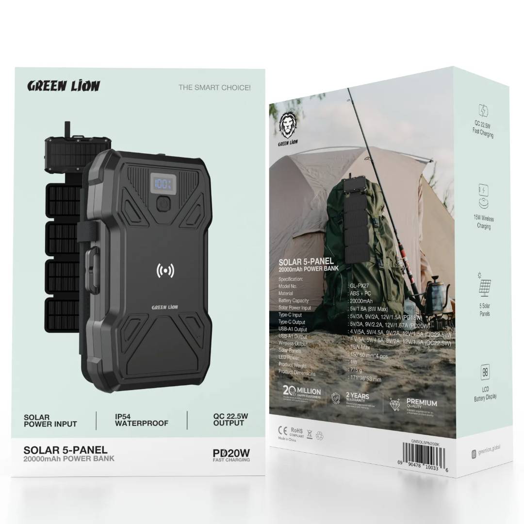 Green Lion Solar 5-Panel 20000mAh Power Bank PD20W