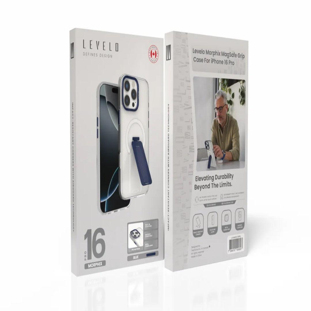 The Levelo Morphix MagSafe Grip Case is designed to combine protection, style, and functionality in one sleek accessory. Featuring hybrid construction, this case ensures durability while maintaining a lightweight profile. With MagSafe compatibility, it delivers seamless wireless charging and secure magnetic attachment to MagSafe accessories.