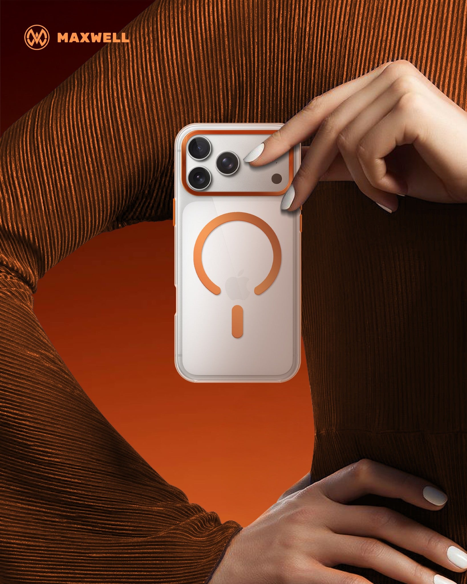Maxwell MagSafe iPhone 17 Pro Max Case with Lens Guard – Crystal Clear, Orange