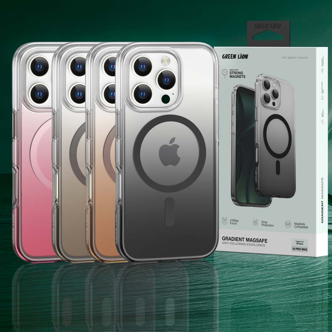 The Green Lion Gradient MagSafe Case shields your iPhone 16 Pro Max or 16 Pro with style. This case is thoughtfully designed to combine a sleek gradient finish with MagSafe compatibility for beauty and functionality. Because it's MagSafe-compatible, it's going to charge with ease and attach with ease to MagSafe accessories, ensuring that it's going to fit in perfectly within your device's ecosystem. The powerful magnetic lock means it will stay connected, and you can confidently use your iPhone. The antioxidant layer and scratch-resistant surface protect it against daily wear and tear, keeping your phone as good as new. It is also drop-protected with air cushion technology, providing superior protection against impacts. Built for clarity to last, the Green Lion Gradient MagSafe Case features yellow-resistant material to keep it as bold and colorful as ever. A non-slip, comfortable grip provides security in your hand, so you don't have to worry about an accidental drop.